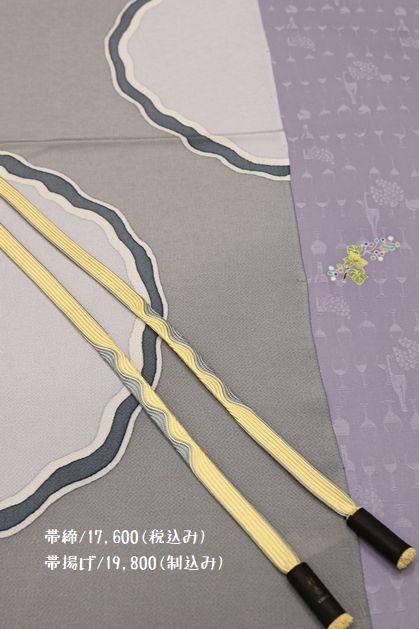 【右側の帯〆淡い黄色とブルーグレーのリバーシブル帯締】