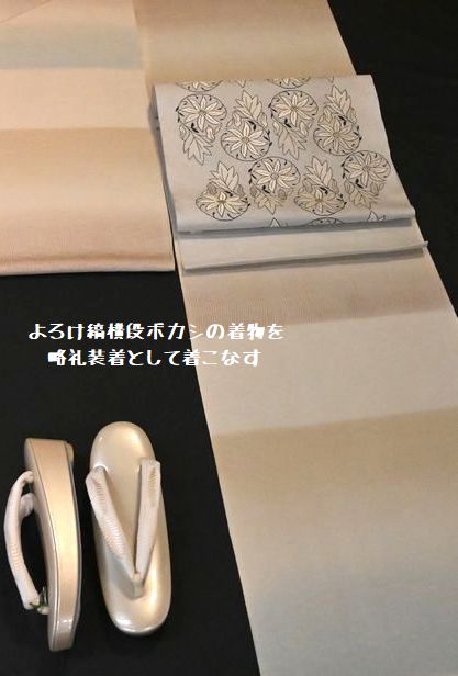 上品な組み合わせで季節感もないことから新年会のパーティーや初釜のお茶会などにお召いただけたら綺麗かと思います。