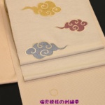 そして今日はもう一つ、県外のお客様からお母さんが日本刺繍した袋帯に付下げを合わせたときの帯締と帯揚げの見立てを依頼されてまして、店から提案できる品をここの用意させていただきました。