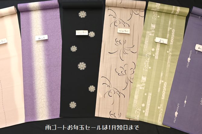 衿の形は4パターンで対応させていただいてまして、オンラインショップからも購入できるように30点近い雨ゴート柄をアップしています。