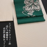 この着姿を見たお客様は、帯とのコーディネートも素敵だと感想もいただいたりして、見立てをさせていただいた側としては嬉しく思うところがありました。