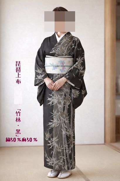 【琵琶上布/麻50%綿50%「竹林・黒」】
