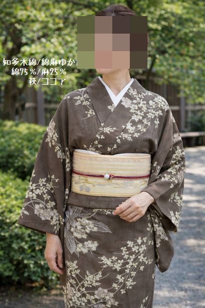 【知多木綿/綿麻ゆかた(綿75%:麻25%)「萩・ココア」】