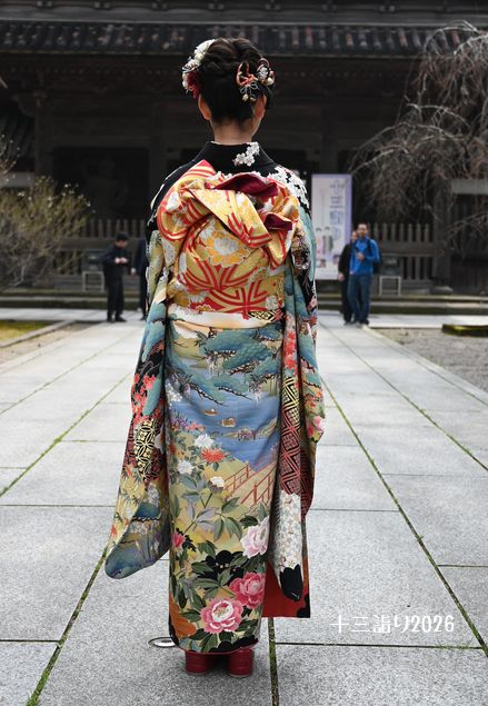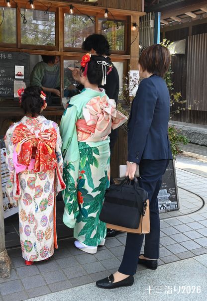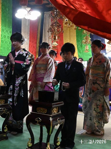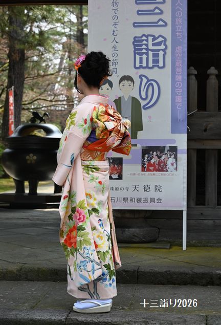 石川県の十三詣りは、着物の振興を図る目的で組織された、きもの専門店が集まって組織された石川県和装振興会によって天徳寺さんお力をお借りして根付かせたもので、コロナ禍で2年間見送られましたが、毎年3月の月末に執り行なっている数えの13才の男女のお参りです。