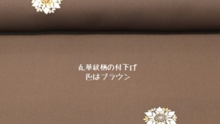 ブラウンの地色に丸華紋を刺繍したアッサリ系の付下げ/そして「8日」のことばのカレンダー