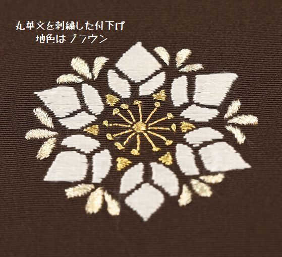 付下げの模様はただ一つ「丸華紋」を刺繍であしらっていまして、模様自体に季節感がないことと模様があったりしているので、お勧めできればと考えていますが、気になることが一つあります。