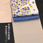 琉球絣 南風原花織のきものを型絵染の帯「欧州更紗柄」でコーディネート